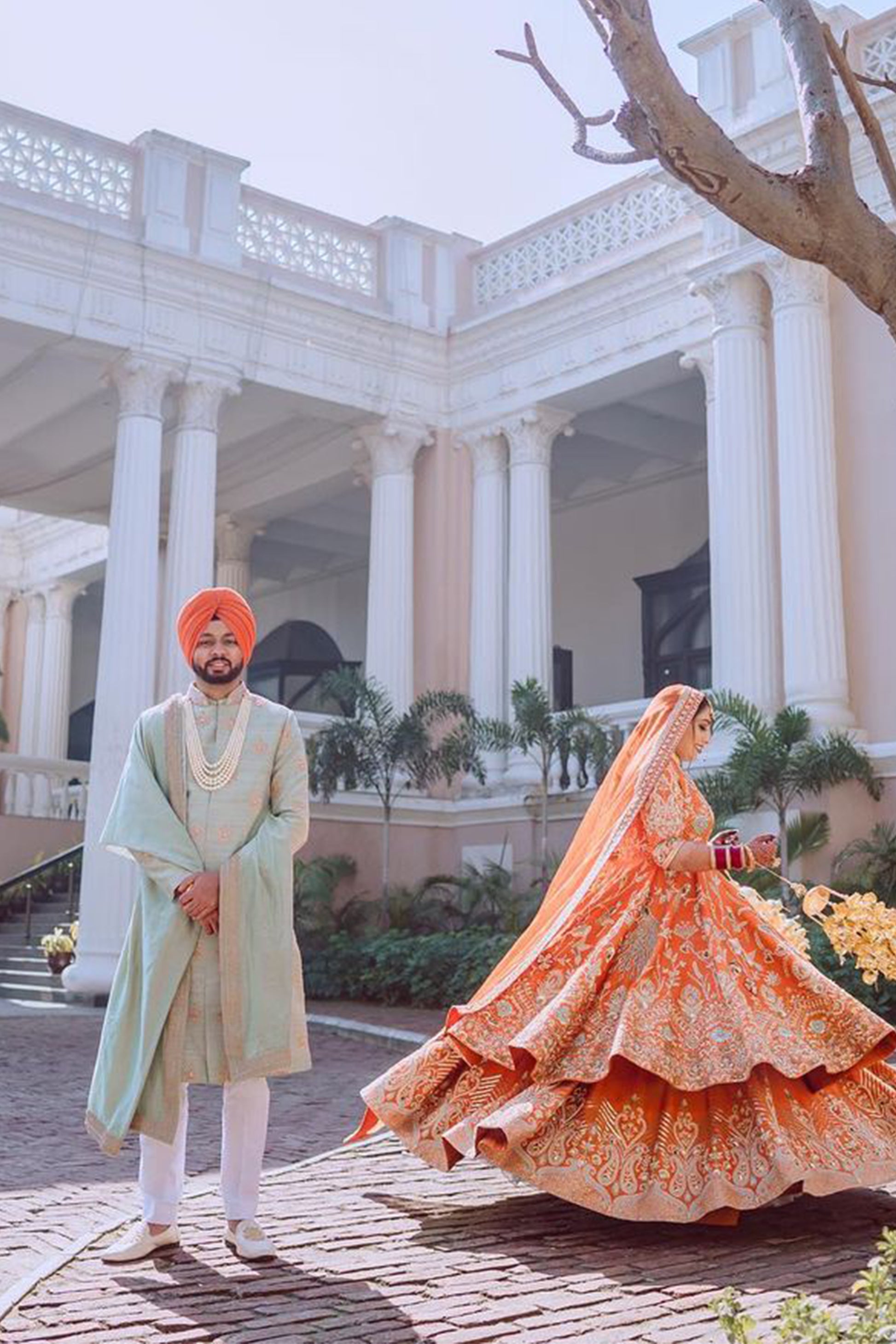 Bridal Anarkali with detailed golden motif jaal and butta skirt