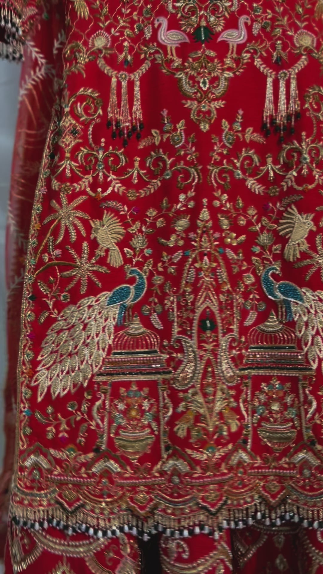 Intricate vintage designed kurti with delicate motifed gharara and detailed dupatta
