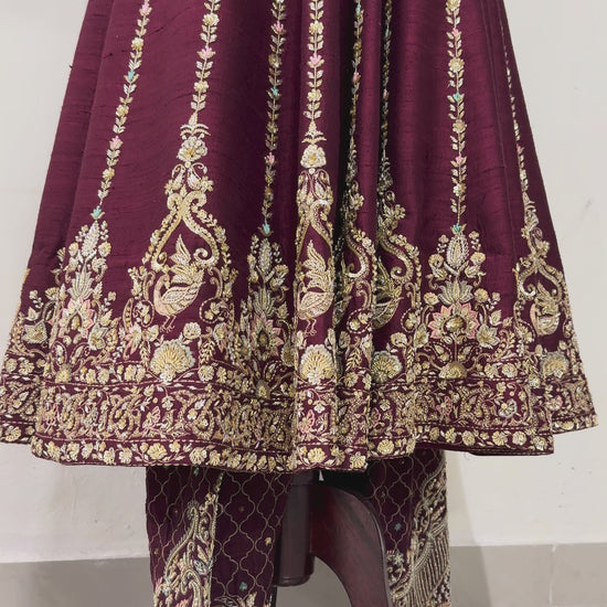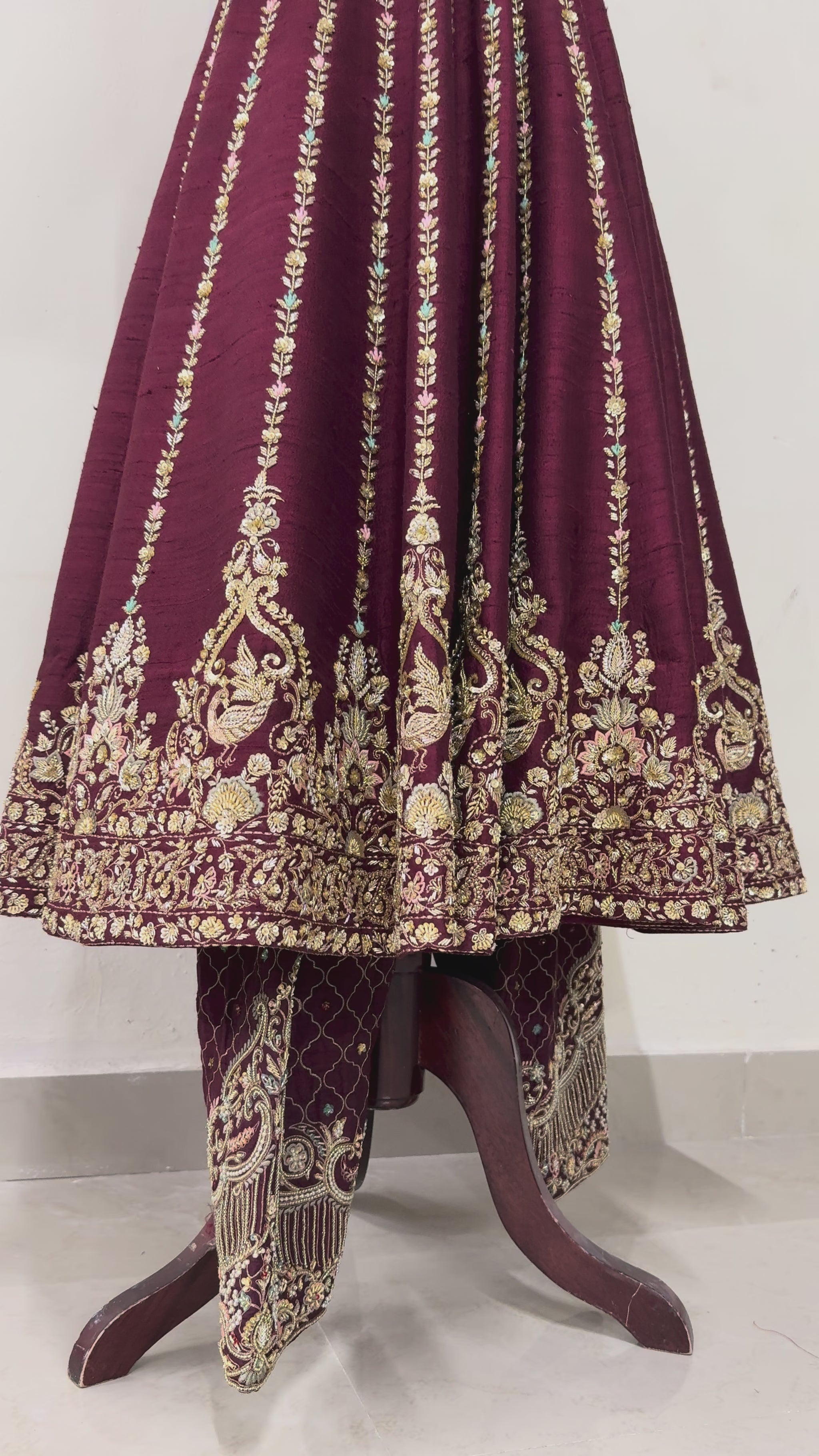 Kalidar Anarkali with heavy intricate designs, embroidered skirt and dupatta.
