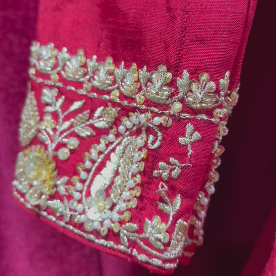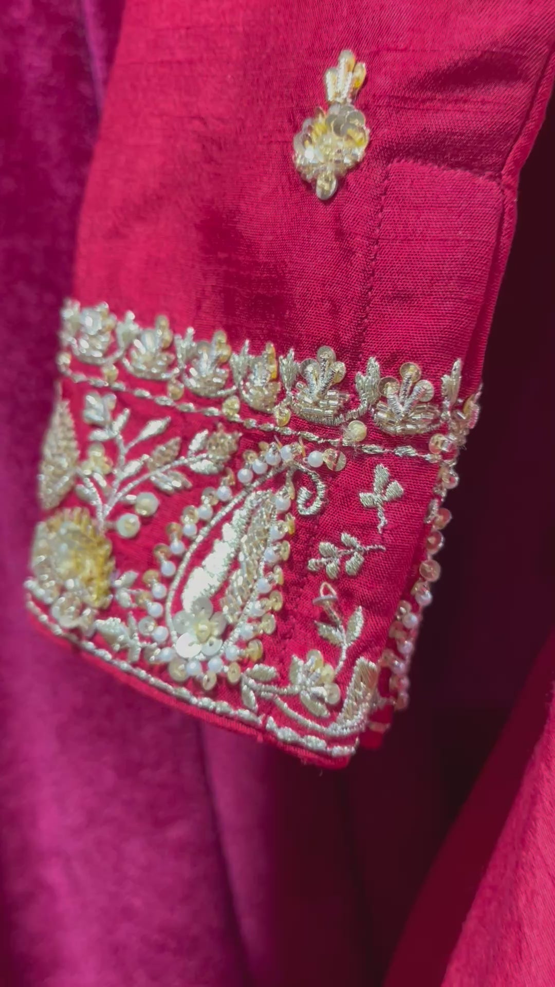 The mirror border is crafted in golden and short kurti shirt with detailed cuff and hem.